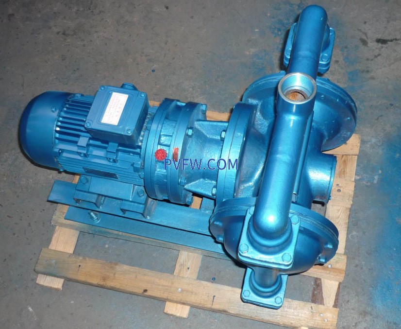 DBY型电动隔膜泵,本公司采用摆线针轮减速机传动,通过曲轴滑块机构带动双隔膜作往复运动,使工作腔容积发生交替变化从而达到将液体不断地吸入和排出。同时,近年来由于隔膜材质取得了突破性的进展,大大地延长隔膜是使用寿命,因此被越来越广泛地替代部分离心泵、螺杆泵来应用于石化、陶瓷、冶金等行业,DBY型电动隔膜泵适用于低压,即出口压力≤3kgf/cm2的场合。